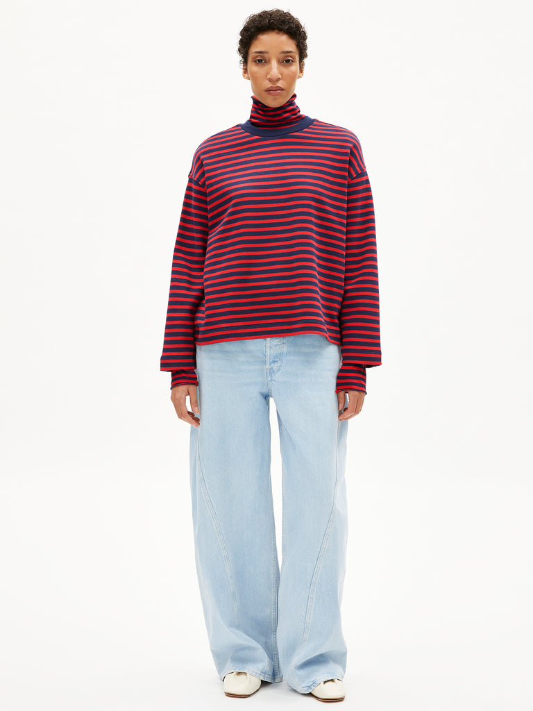 / Col roulé en coton biologique Grazilianaa Stripes - tinted navy / candy apple