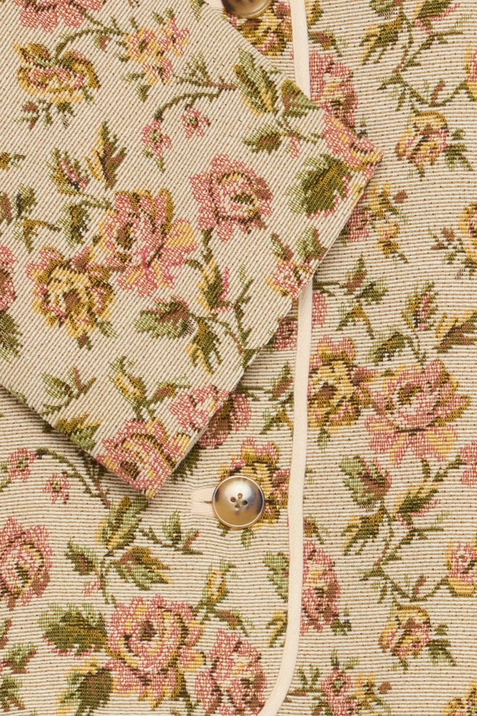• Son jacquard fleuri : riche en texture, avec un motif vintage qui capte l’œil et donne du caractère à n’importe quelle tenue.