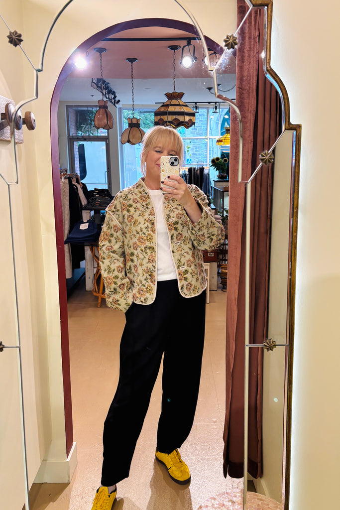 Irmaria, c’est le genre de veste qu’on enfile et qui te donne instantanément un maximum de satisfaction : coupe flatteuse, motif plein de personnalité et confort . Bref, un look de feu assuré.