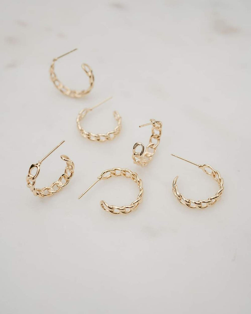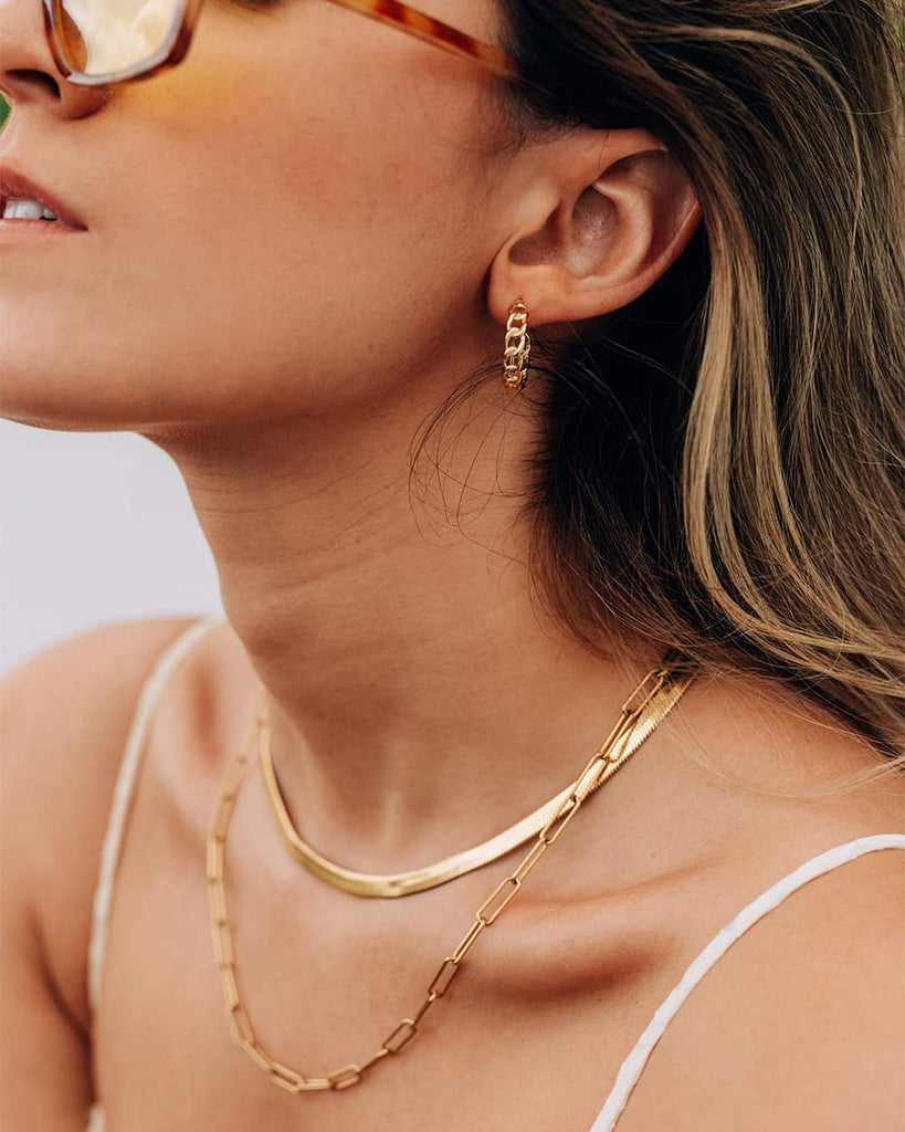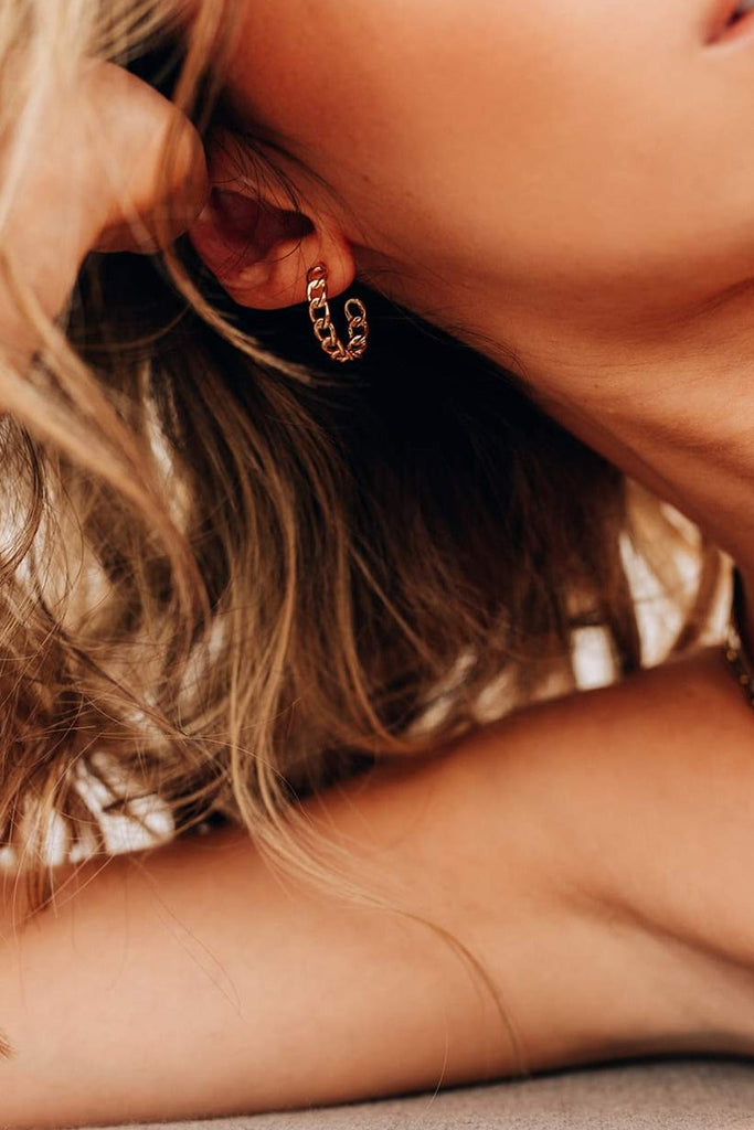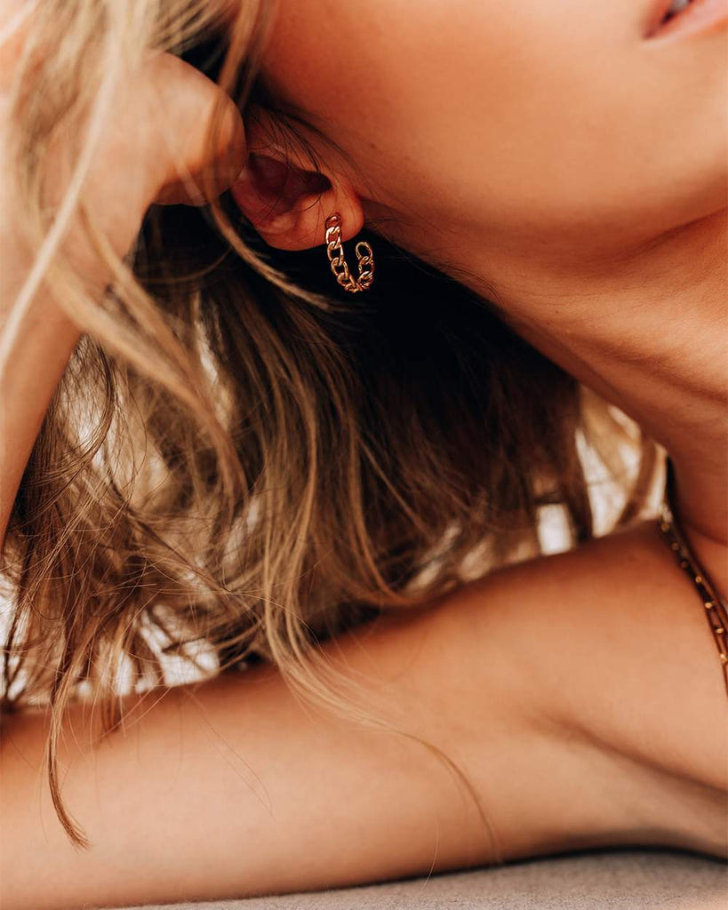 Cubano offre un look irréprochable et complètement caliente. Match ces anneaux avec notre bague Shane! Les boucles d'oreilles Cubano or sont des anneaux de chaîne gourmette entièrement plaqué en or 24 carats.