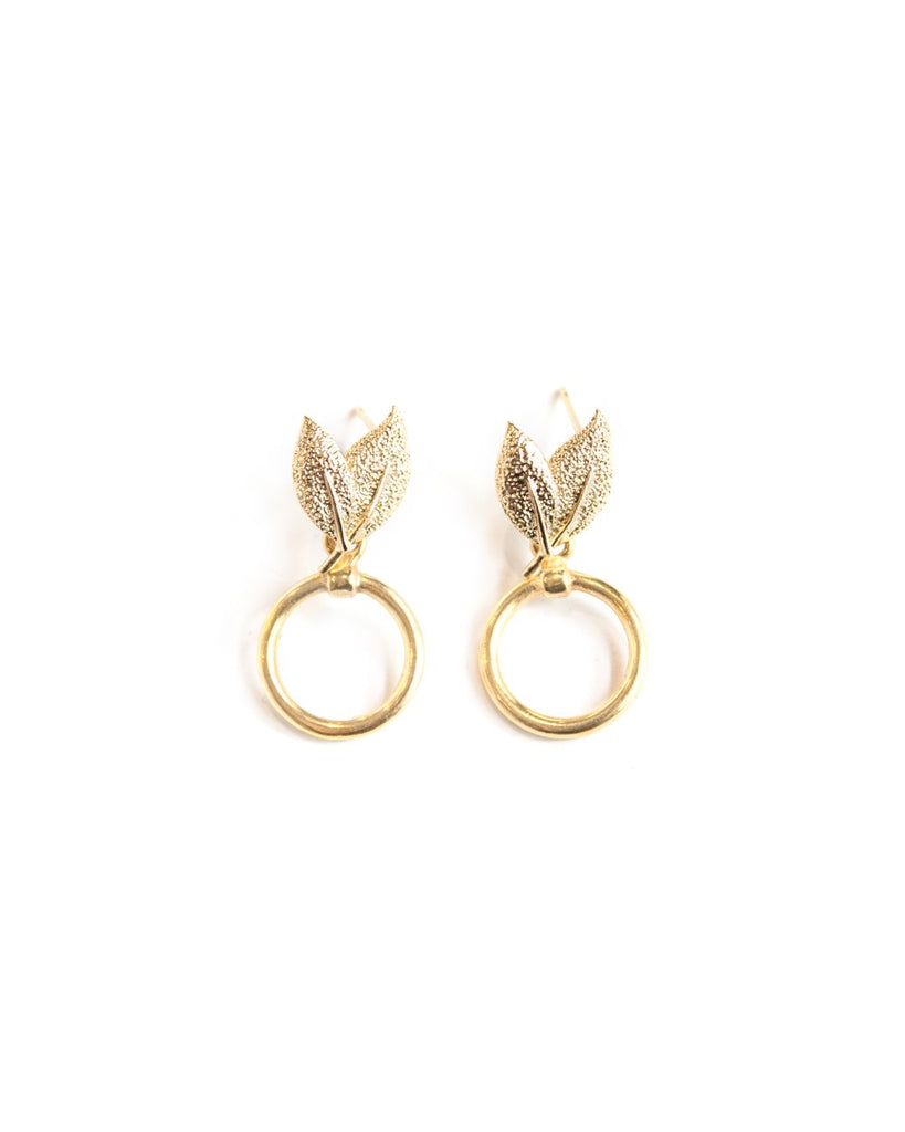 Complétez votre look avec ces jolies feuilles givrées pour un vent de fraîcheur au naturel! Ces petites boucles d'oreilles plaquées en or 24 Carats de type clous d'oreilles s'agencent avec tout. À la fois délicates et courtes, les boucles d'oreilles Praline or égayent votre cou avec leurs studs en forme de feuille et leurs petits anneaux dorés.
