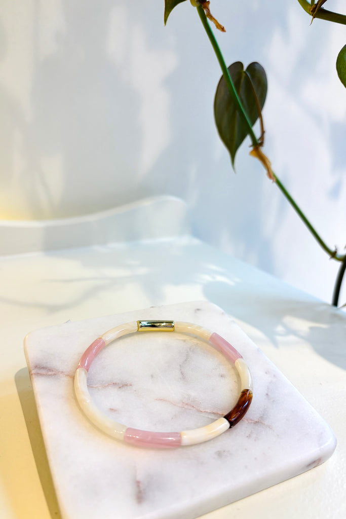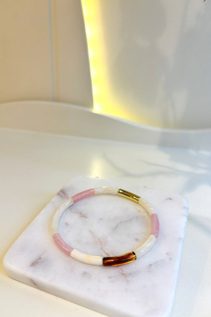 Couleurs: rose pâle, blanc-crème, ambre, brun-taupe