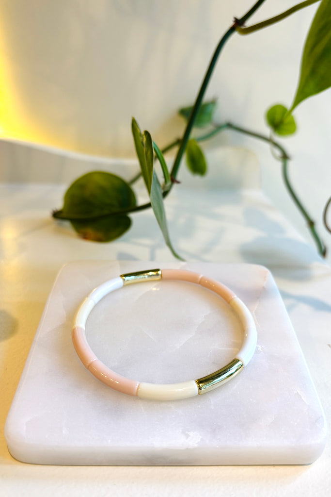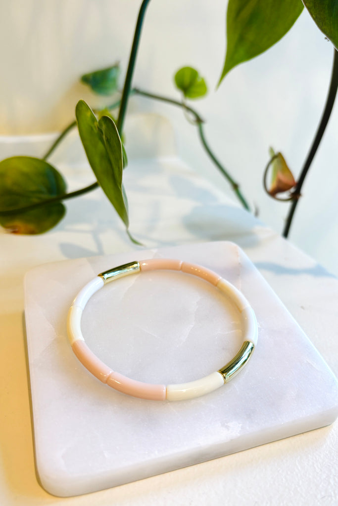 Bracelet fait de billes colorées montées sur élastique