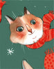 Charmante carte de souhaits avec une illustration de 3 chats portant un foulard tricoté sous la neige.