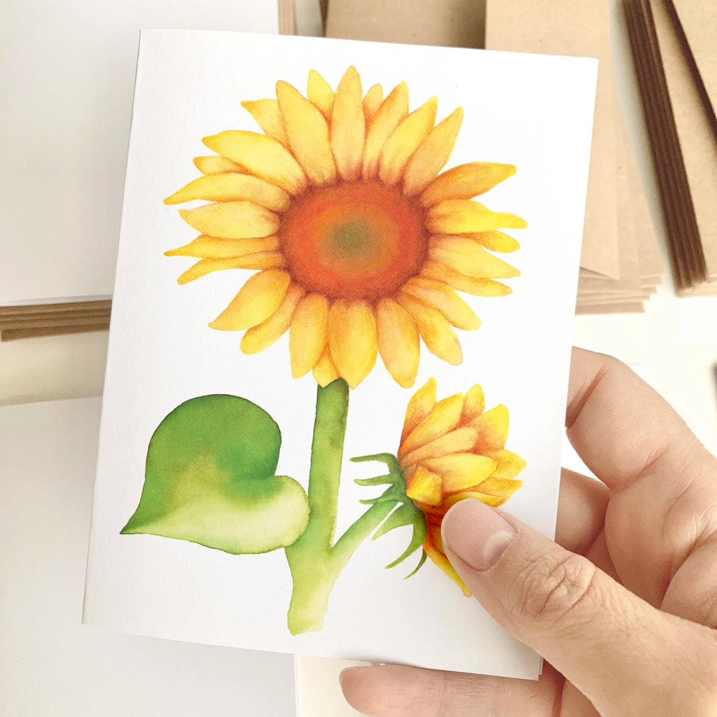 Comme cousu par la nature, ce tournesol symbolise la gratitude, la chaleur et l’abondance des récoltes. Une carte de souhait parfaite pour accompagner un message d’amitié ou de remerciement.