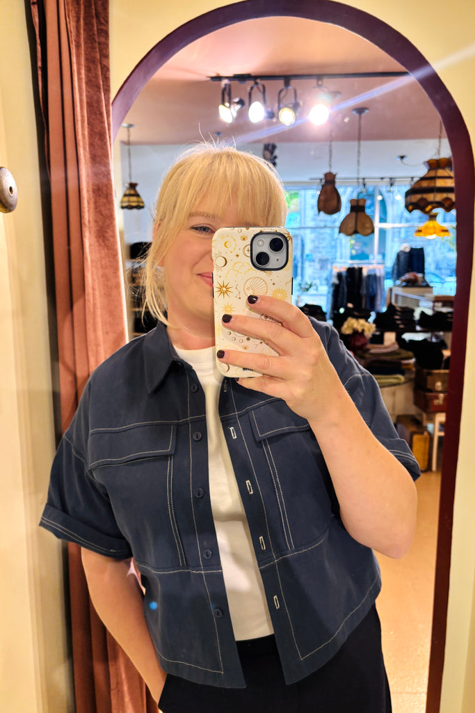 Quant à sa couleur marine, c’est un vrai caméléon dans la garde-robe — elle s’agence avec absolument tout.