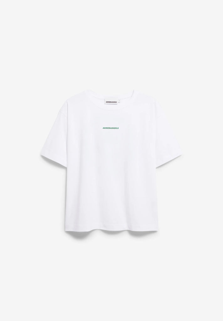 • Sur l'avant on peut voir l'inscription "ARMEDANGELS" et "Made to make a difference" ainsi qu'un grand sourire brodé version "happy face"