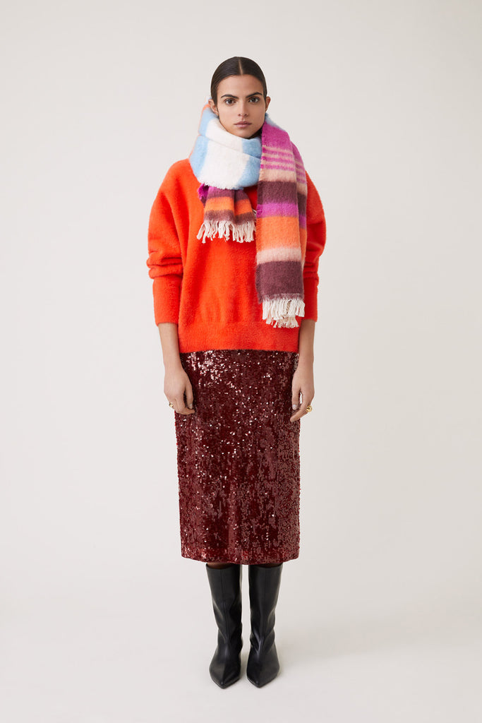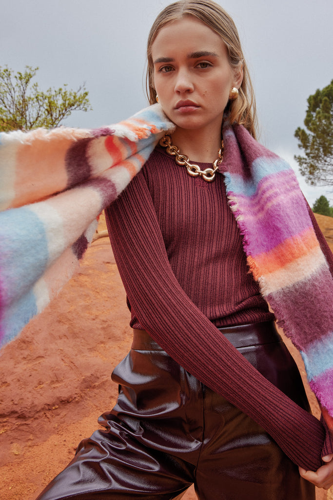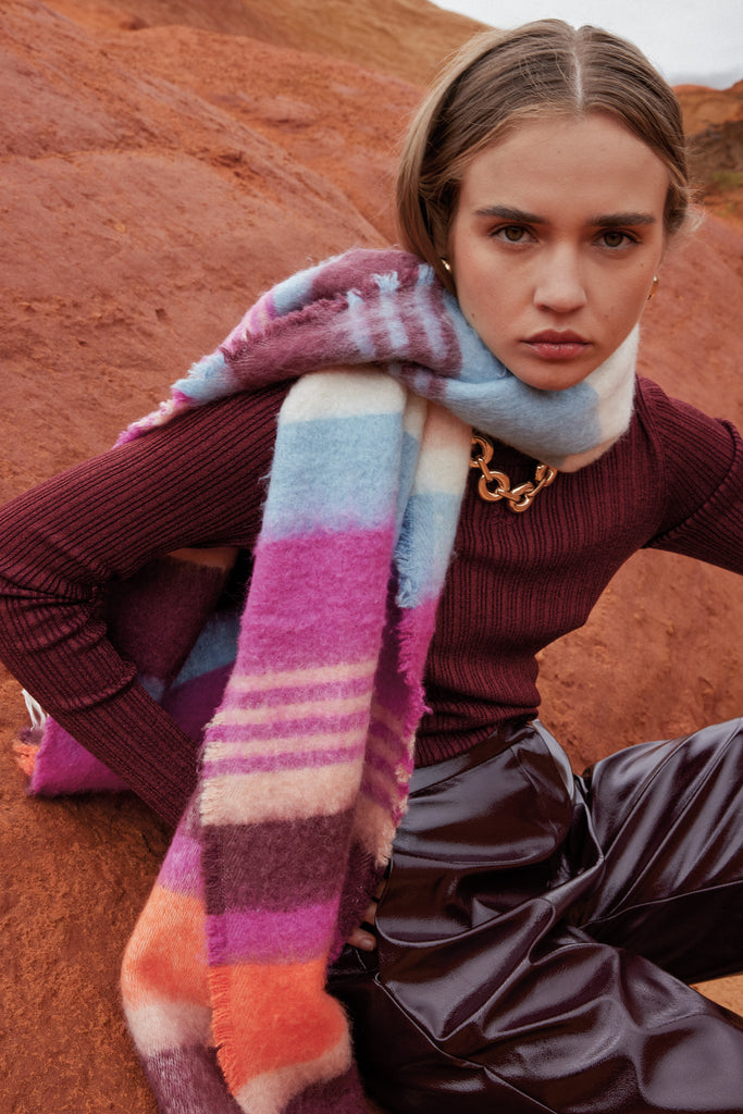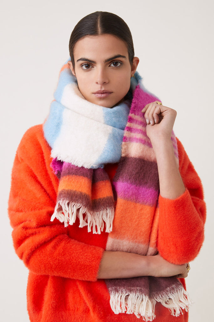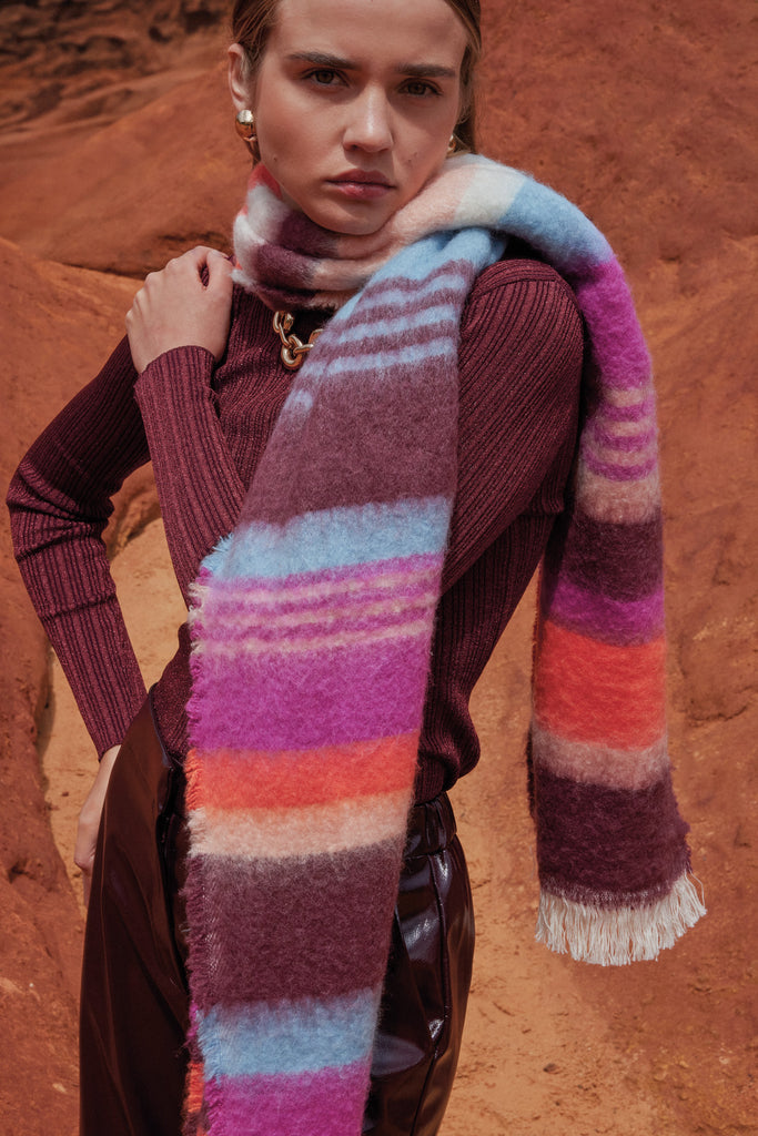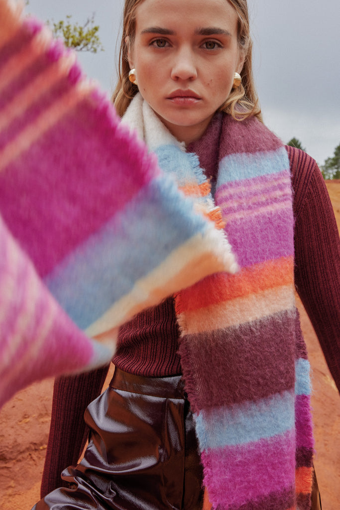 • Longue écharpe à rayures contrastantes avec franges aux extrémités