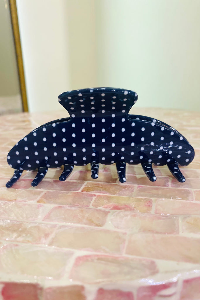 Pince à cheveux dans un joli motif de petits pois blancs sur fond marine