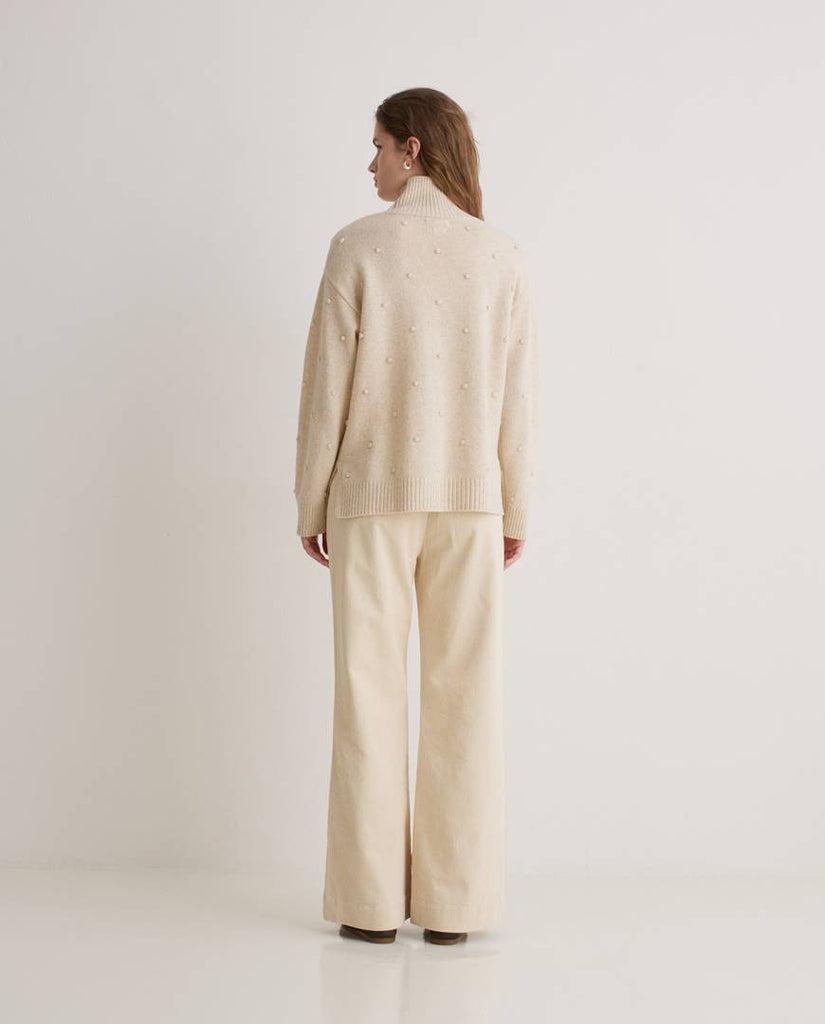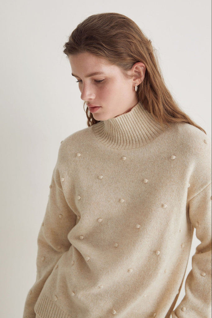 Ce nouveau pull de la marque Yerse me charme énormément! Ses petits pompons en ton sur ton me font craquer!!!
