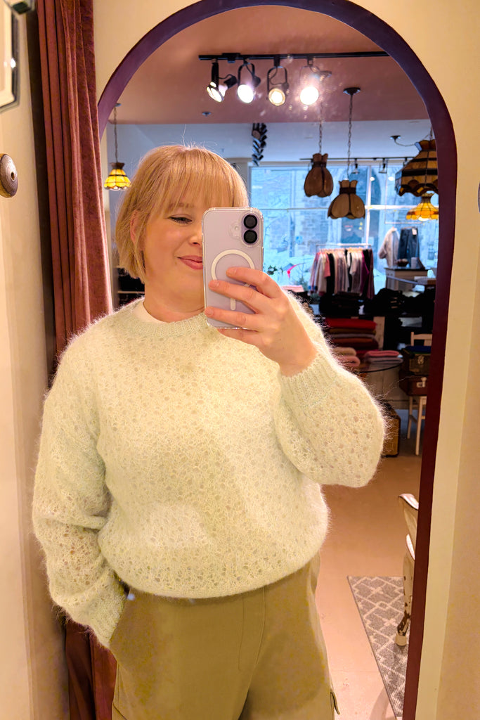- Pull réalisé en Kid Mohair et laine mérinos; un fil italien emblématique chez Des Petits Hauts depuis 10 ans