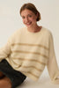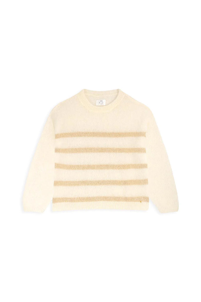 - Pull à rayures horizontales de couleur beige et fil métallique doré