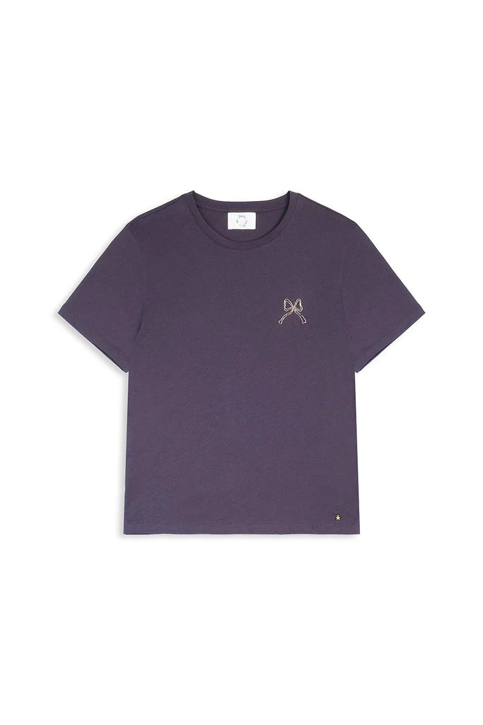 Basique de la garde-robe twisté d'une touche d'originalité, le t-shirt Faustine se pare d'un joli noeud brodé de perles posé à la façon d'une broche.