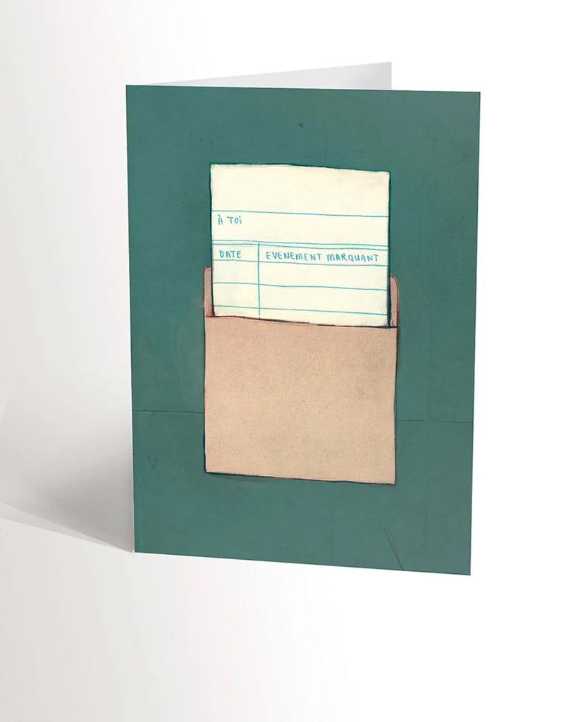Carte de souhaits avec une illustration de carte de bibliothèque vintage pour toutes occasions.