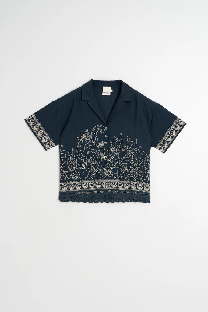 Chemise à broderie contrastée Léonore - marine