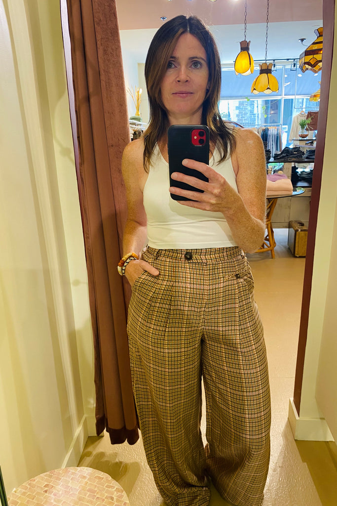 Le Pantalon Canelle de FRNCH, c’est la rencontre parfaite entre allure vintage et modernité responsable. Issu de la ligne CHANGE, pensée pour une mode plus durable, ce pantalon à carreaux ocre est une pièce forte qui donne tout de suite du style à ta tenue. On aime sa jambe droite et ample, ses jolies pinces à la taille et son tissu exclusif aux accents rétro. Parfait pour les journées au bureau, les sorties du week-end ou simplement pour te sentir fabuleuse au quotidien!