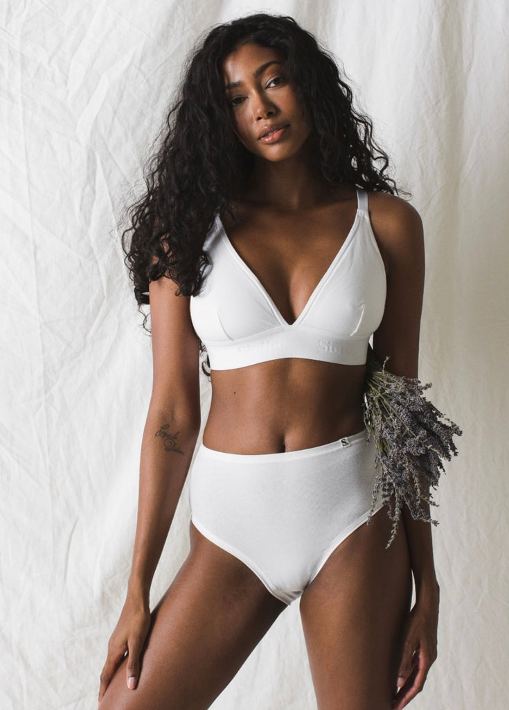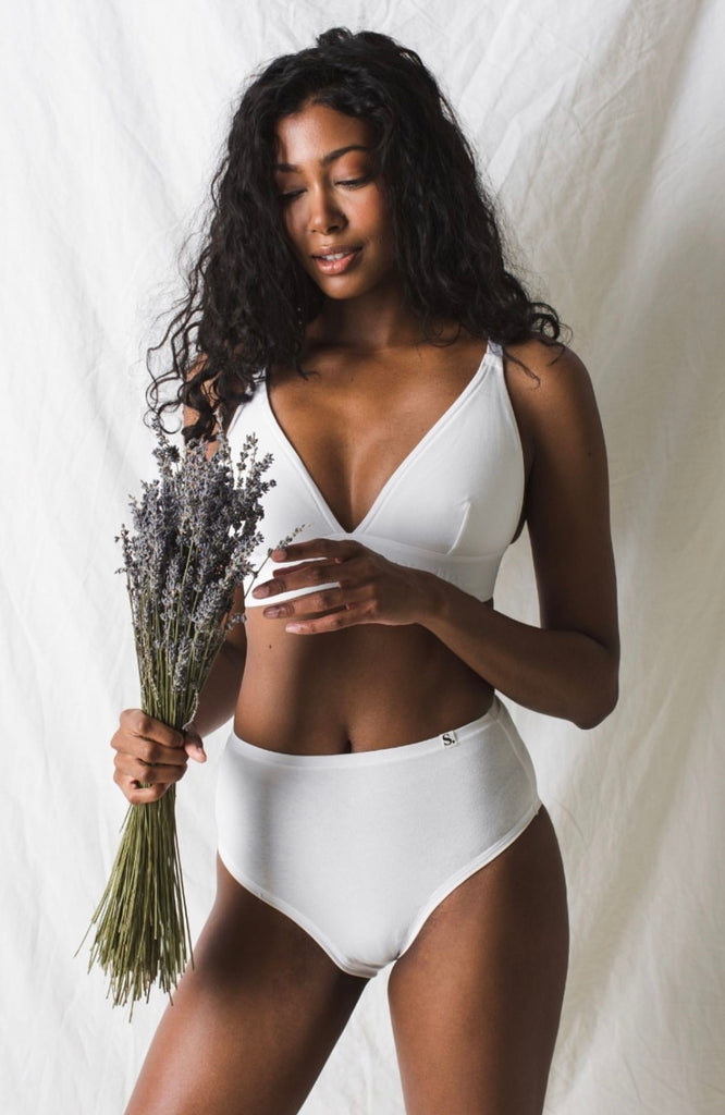 Pour reproduire le look, porte-la avec la culotte taille haute en coton bio.