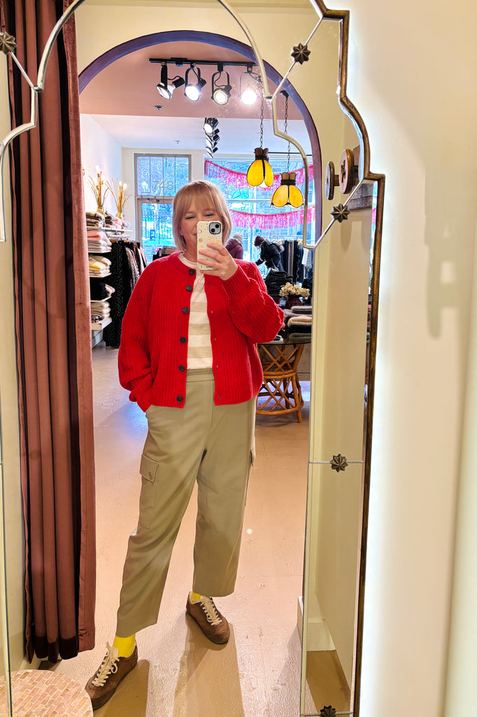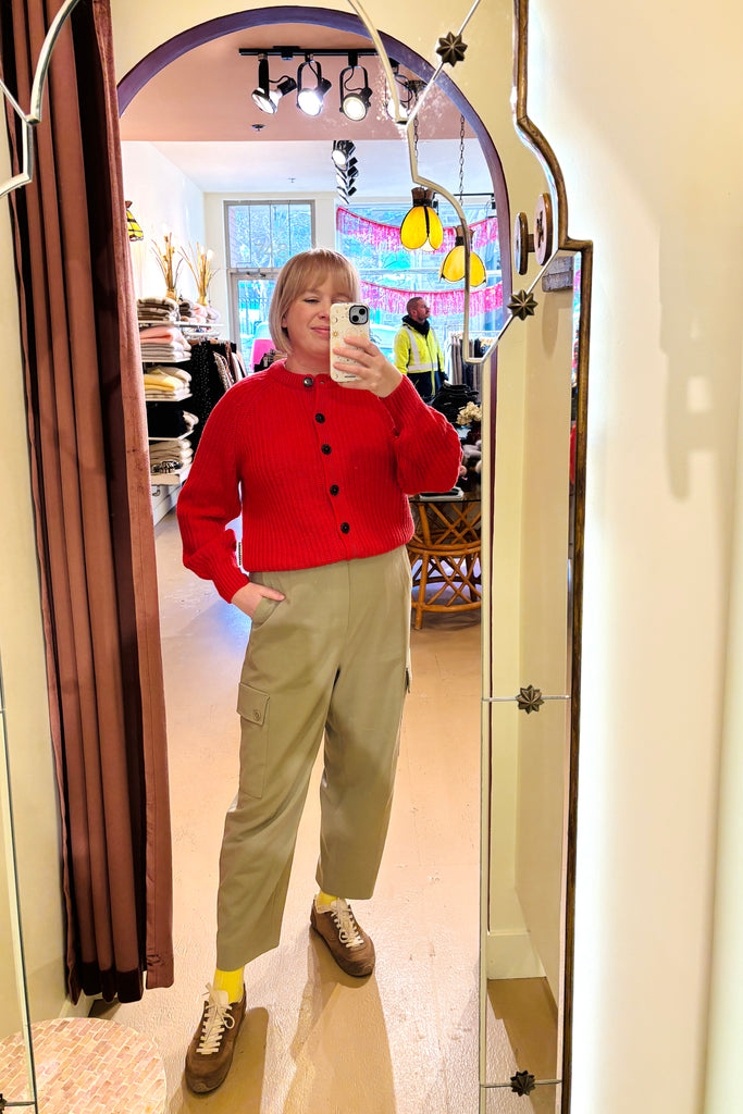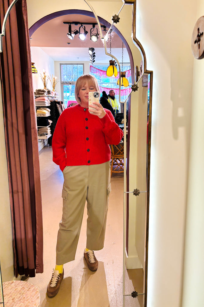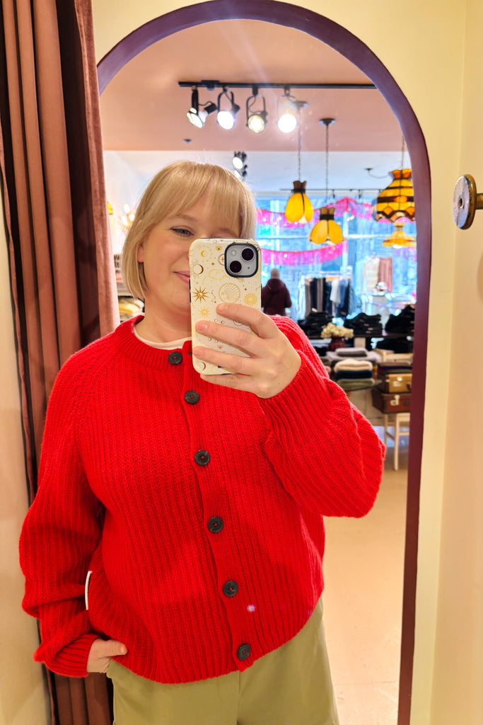 Tu cherches un cardigan chaud, flatteur et absolument irrésistible? Le Selmaa d’Armedangels a tout pour devenir ton nouveau favori de la saison. Avec son rouge vibrant, sa maille généreuse et son mélange de laine biologique ultra-moelleuse, il transforme instantanément n’importe quel look en un grand WOW.