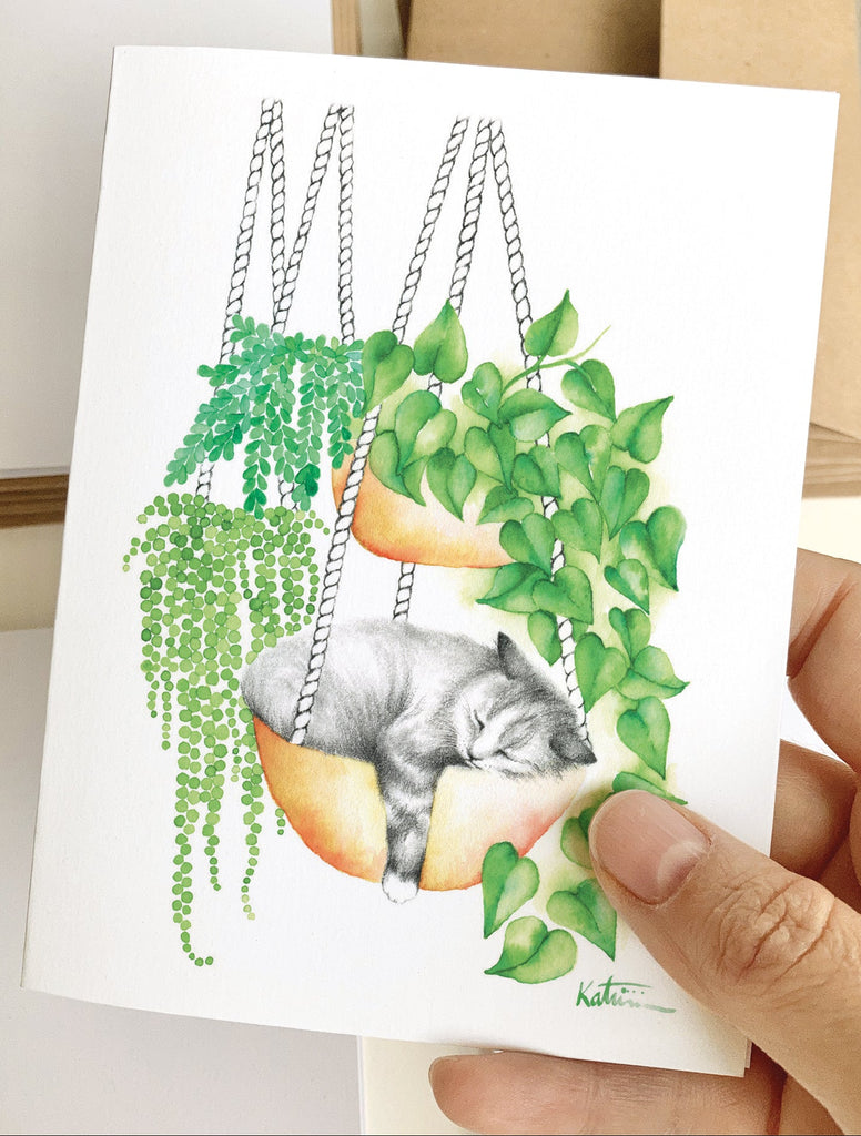 Illustratrice travaillant et vivant à Québec, Katrinn Pelletier dessine et peints de délicates merveilles pour en faire des cartes de souhaits. Influencée par la vie urbaine et la nature, elle couche sur papier couleurs et idées qui se mélangent dans sa tête.