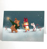 - Charmante carte de souhaits avec une illustration de trois animaux, un ours avec un sapin de Noël, un chat avec un cadeau, une souris avec une canne de Noël