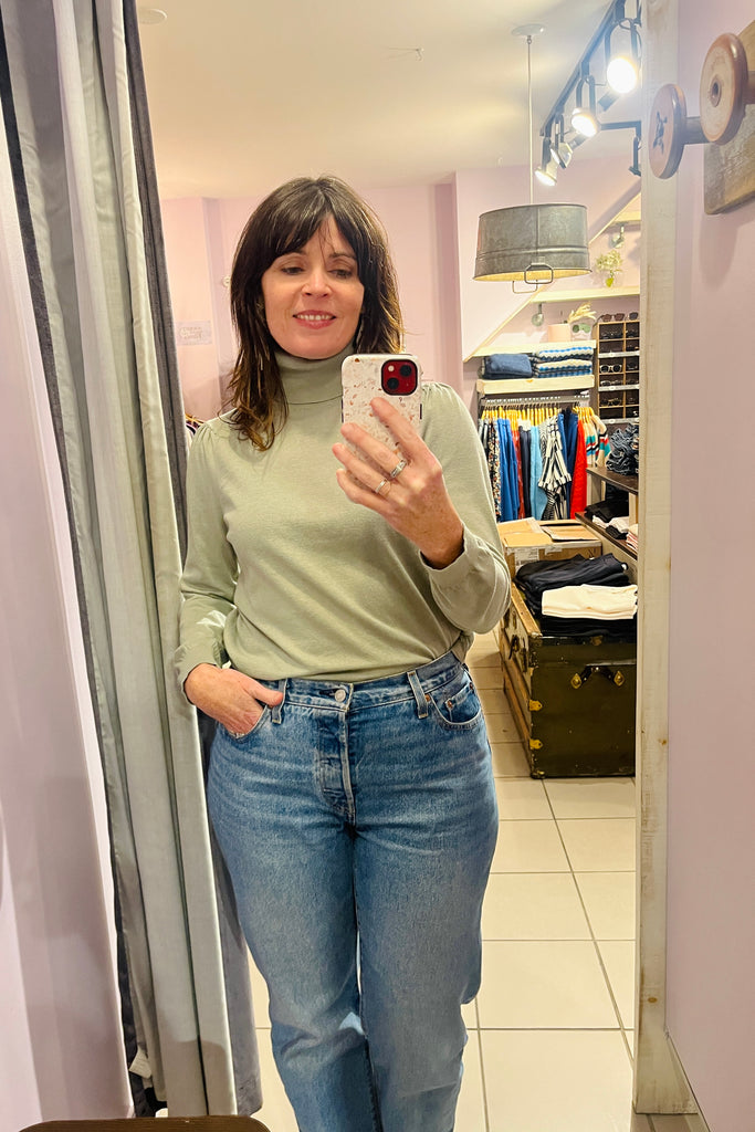 Tu cherches un basique avec une petite twist le fun? La marque Indi & Cold nous propose un col roulé léger dans une magnifique couleur sauge! On adore!