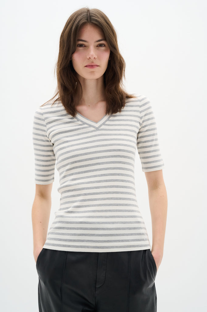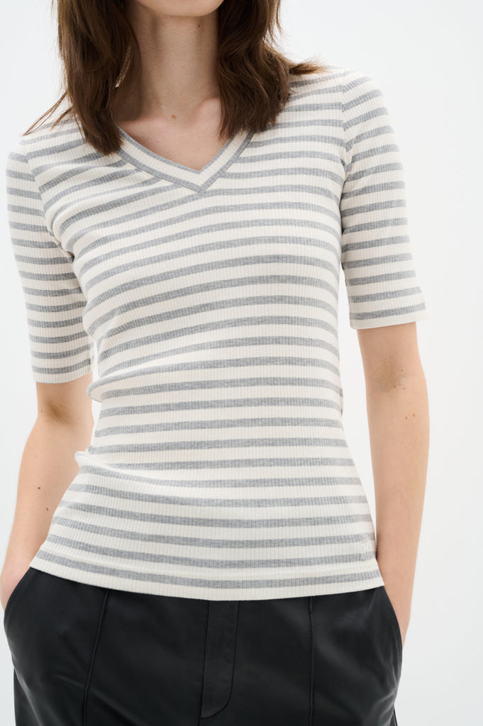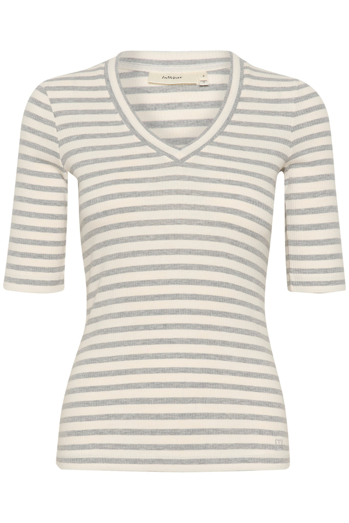 / Tee-shirt col V à manches courtes DagnaIW - medium grey / white