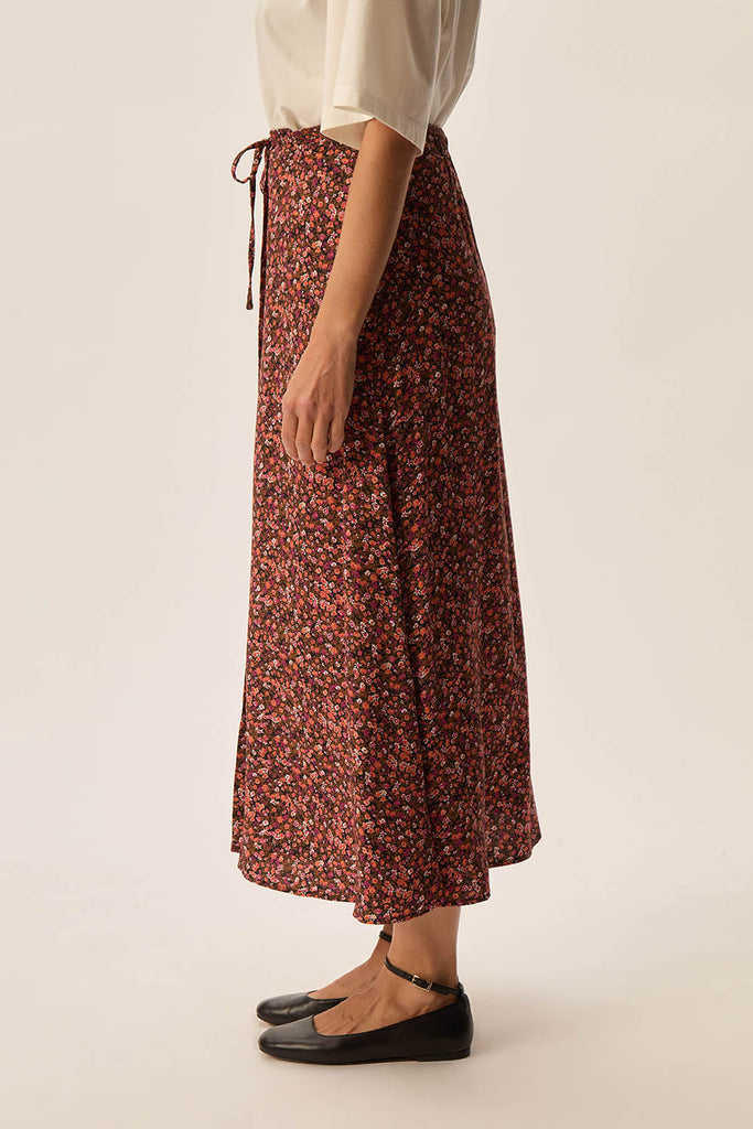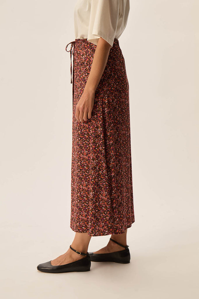 Fluide, taille haute et boutonnée pour une silhouette moderne et confortable, la jupe midi Elizette insufflera une touche folk à vos looks d'hiver.