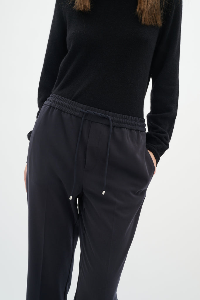 • Pantalon taille haute à jambes droites, légèrement étroites et écourtées