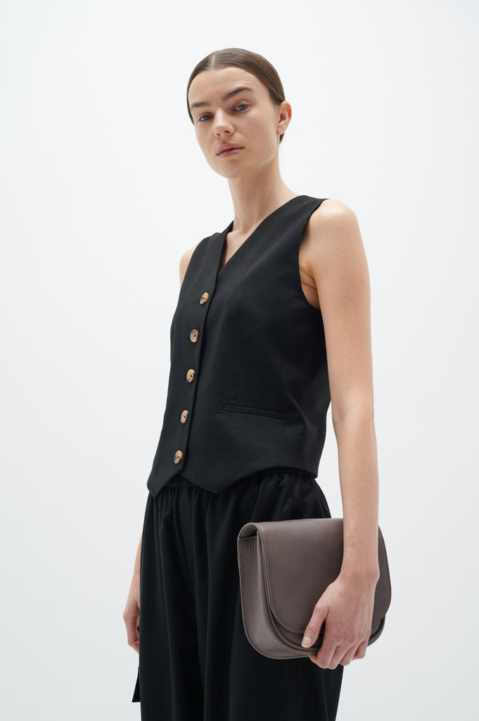 • Poches latérales, large poche à rabat sur un des côtés et poches passepoilées derrière
