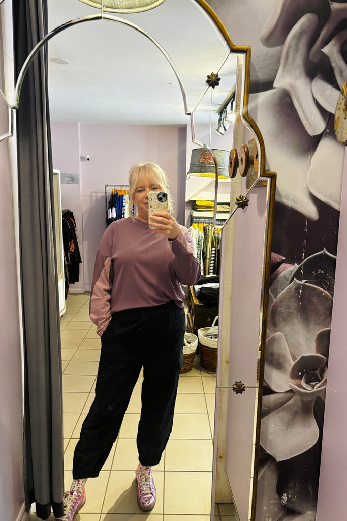 • Josiane, co-proprio du Jupon Pressé, mesure 1m69 et porte habituellement la taille L. Pour le pantalon Wai, c'est la grandeur M qui lui convient. / Mensurations: Poitrine: 107 cm, Taille: 94 cm, Hanches: 107 cm / Photos 2-4