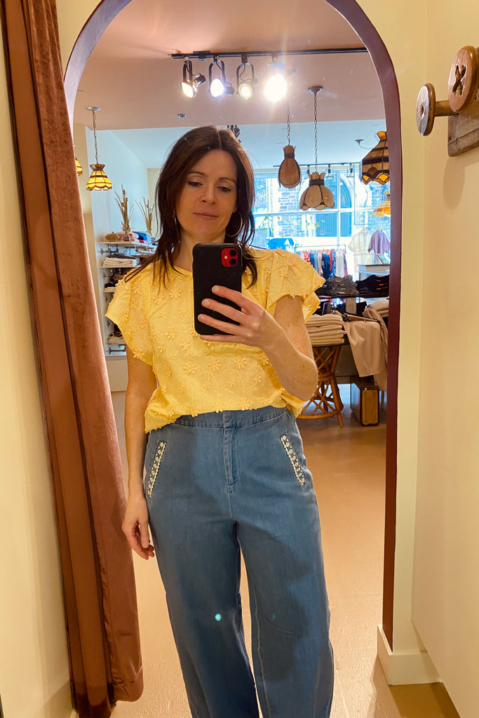 J'adore la touche féminine sur ce jean avec son détail de broderies aux poches!