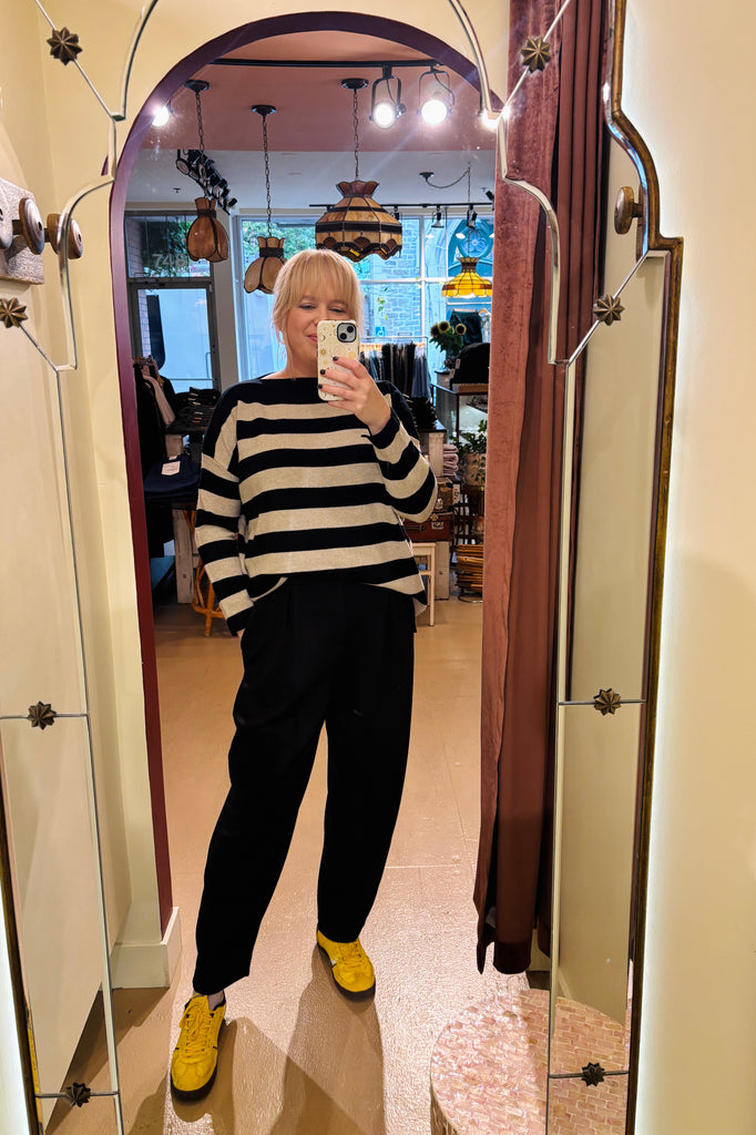 Voici le pantalon PannieIW de InWear : une pièce coup de cœur conçue dans ce modal qu’on adore tant. Notre clientèle l’a déjà adopté depuis longtemps dans sa version noire, et on comprend pourquoi il revient saison après saison. Dans cette couleur marine, il gagne encore en polyvalence et devient un essentiel à mixer avec absolument tout.
