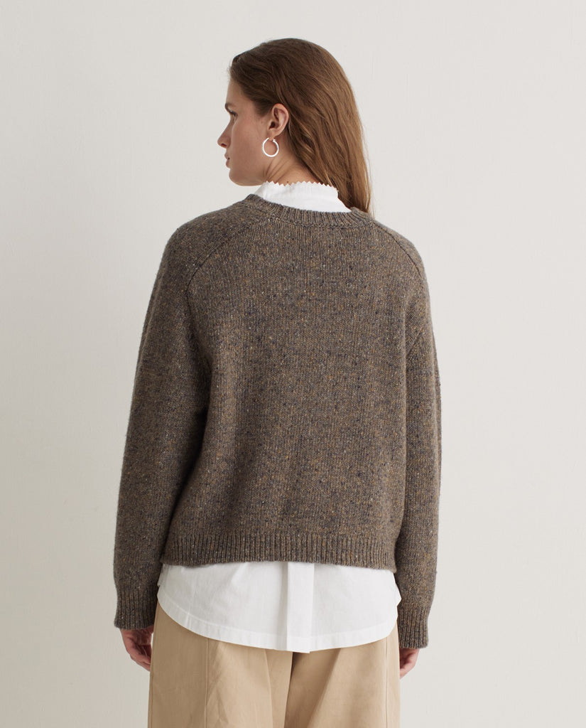 Le pull Adrien de Yerse, c’est le parfait équilibre entre chaleur, texture et classique décontractée. Sa teinte unique — un brun profond rehaussé de petites touches « confettis » dans les tons ocre, marine et beige-gris — apporte cette richesse qu’on aime.