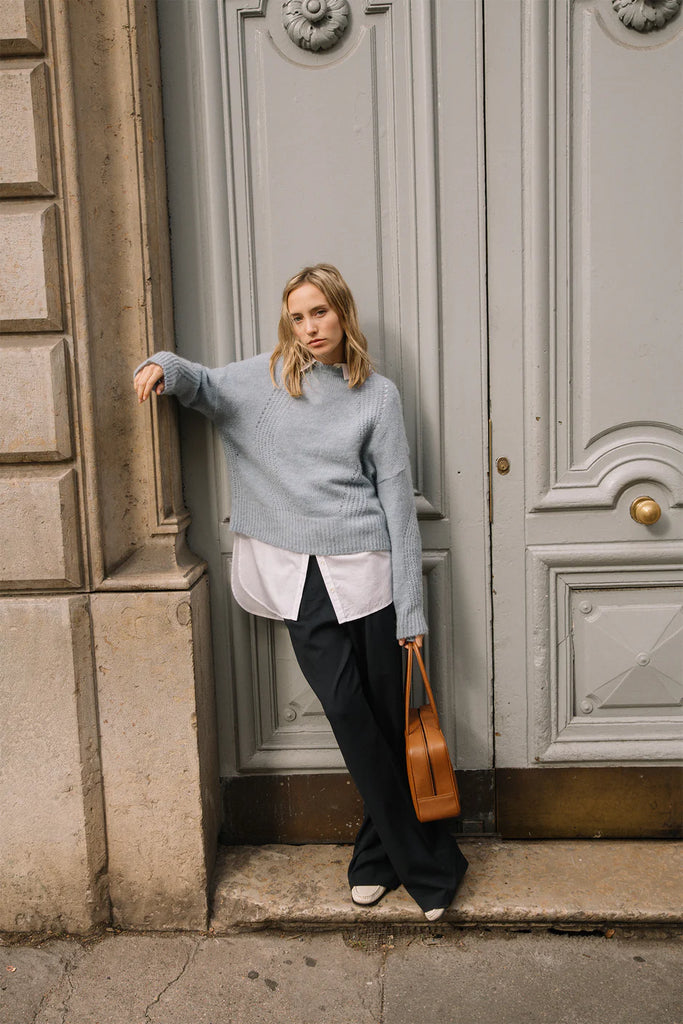 Ce pull est la définition même du basique parfait : une coupe décontractée, une maille douce et légère, et cette magnifique couleur bleu ciel qui illumine le teint et le moral ! Tu sais, le genre de pièce qu’on enfile sans se poser de question, parce qu’elle va avec tout et qu’elle fait du bien à porter. Un vrai essentiel de garde-robe, revisité avec le savoir-faire italien qu’on aime tant chez Indi & Cold.