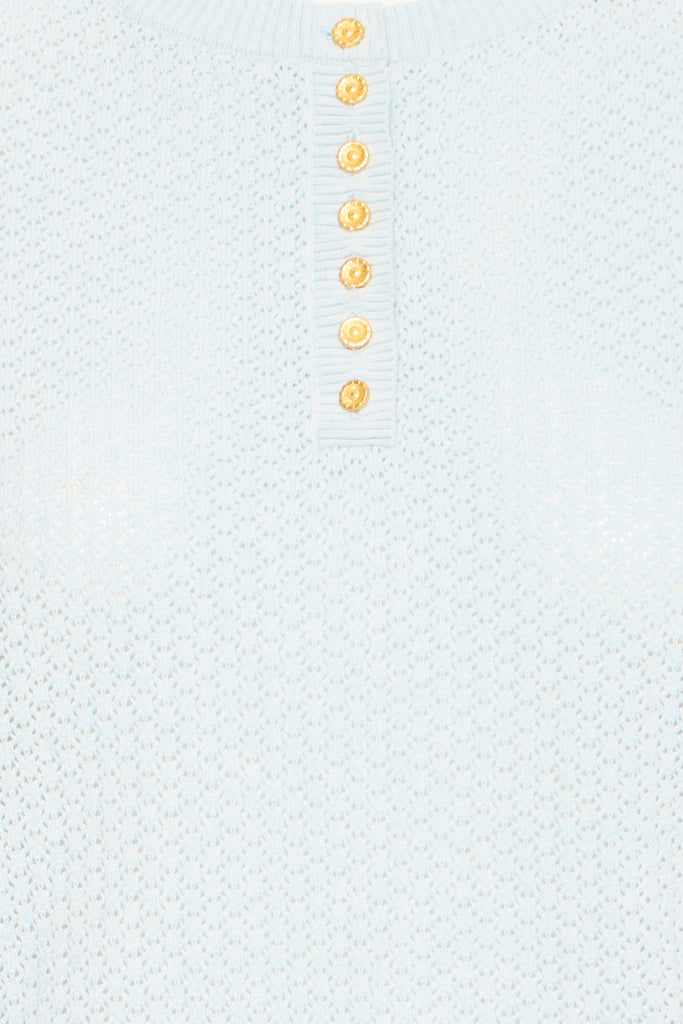 • Ses détails féminins : petits boutons dorés en forme de fleurs, son motif dans la maille et ses ourlets festonnés