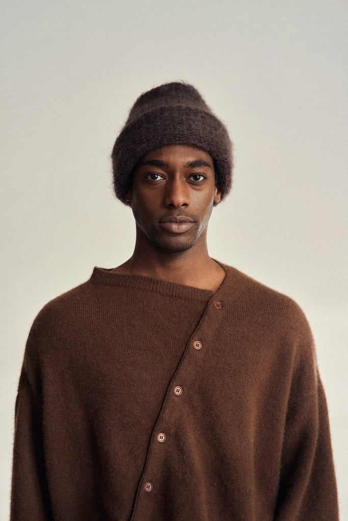 Parce qu’il est littéralement aussi doux qu’un nuage ! Sa maille légère en mélange de mohair, laine mérinos et nylon offre chaleur et confort sans jamais gratter. On aime aussi son revers généreux que tu peux rouler deux fois pour un look plus ajusté. Et surtout : il est tricoté à Montréal, avec le soin et le savoir-faire artisanal qu’on chérit tant.